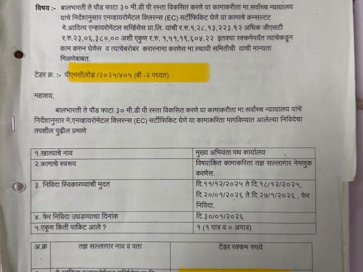पुणे महानगरपालिकेच्या बालभारती ते पौड फाटा ३० मीटर डी.पी. रस्ता विकास कामाच्या पर्यावरणीय परवानगी प्रक्रियेतील निविदेत मोठ्या आर्थिक अनियमिततेचा आरोप करण्यात आला आहे. या कामासाठी ‘आदित्य एन्व्हायर्नमेंटल सर्व्हिसेस प्रा. लि.’ या कंपनीने ३४.६५ लाख रुपयांची सर्वात कमी निविदा सादर केली होती. मात्र, स्थायी समितीसमोर मंजुरीसाठी ठेवण्यात आलेल्या प्रस्तावात हीच रक्कम १.५१ कोटी रुपये (१.२८ कोटी + जीएसटी) इतकी दाखवण्यात आली आहे. यामुळे एकाच कामासाठी कोणताही ठोस आधार नसताना निविदेच्या रकमेत जवळपास चारपट वाढ करण्यात आल्याचे समोर आले आहे. ही केवळ प्रशासकीय चूक नसून जनतेच्या पैशांची उघड लूट असल्याचा गंभीर संशय व्यक्त होत आहे. विशेष म्हणजे, पहिल्या निविदेला प्रतिसाद न मिळाल्याने पुन्हा निविदा काढण्यात आली होती आणि त्यात केवळ एकच निविदा प्राप्त झाली असतानाही ही अवाढव्य रक्कम वाढवण्यात आली. या प्रकरणावर महाराष्ट्र प्रदेश युवक काँग्रेसच्या प्रसारमाध्यम विभागाचे अध्यक्ष अक्षय जैन यांनी तीव्र टीका केली आहे. ते म्हणाले की, “निविदा एक आणि रक्कम चारपट, हा पुणे महापालिकेचा नवा ‘मॉडेल’ आहे का? गेल्या काही दिवसांत महापालिकेच्या निर्णयात पारदर्शकतेचा अभाव दिसत असून, विकासाऐवजी केवळ ठेकेदारांना फायदा करून देण्याचे काम सुरू आहे.” जैन यांनी पुढे म्हटले की, ३४ लाखांच्या निविदेवर १.५१ कोटींची मंजुरी ही केवळ त्रुटी नसून सिस्टिमॅटिक गैरव्यवहार करून काहींचे खिसे भरण्याचा प्रकार आहे. या पार्श्वभूमीवर, या संपूर्ण प्रकरणाची उच्चस्तरीय व स्वतंत्र चौकशी करण्याची मागणी प्रशासनाकडे करण्यात आली आहे. तसेच, निविदा रक्कम व मंजुरी रक्कम यातील तफावत स्पष्ट होईपर्यंत संबंधित आर्थिक व्यवहार स्थगित करावेत आणि जबाबदार अधिकाऱ्यांवर कठोर कारवाई करावी, अशी मागणीही त्यांनी केली. पुणेकरांच्या करातून उभ्या राहणाऱ्या निधीचा असा गैरवापर होऊ देणार नाही, असा इशाराही यावेळी देण्यात आला.